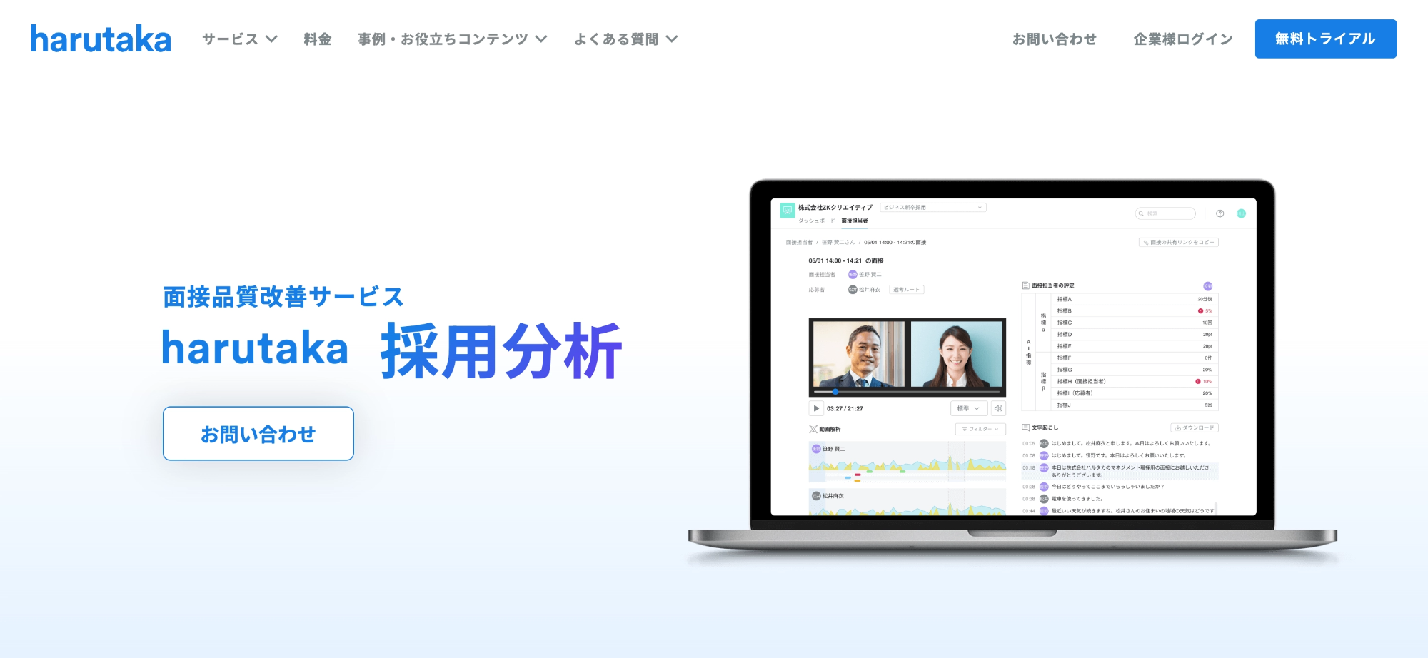 主な機能:面接動画のAI解析・面接官バイアス診断・面接品質レポーティング・採用データ分析