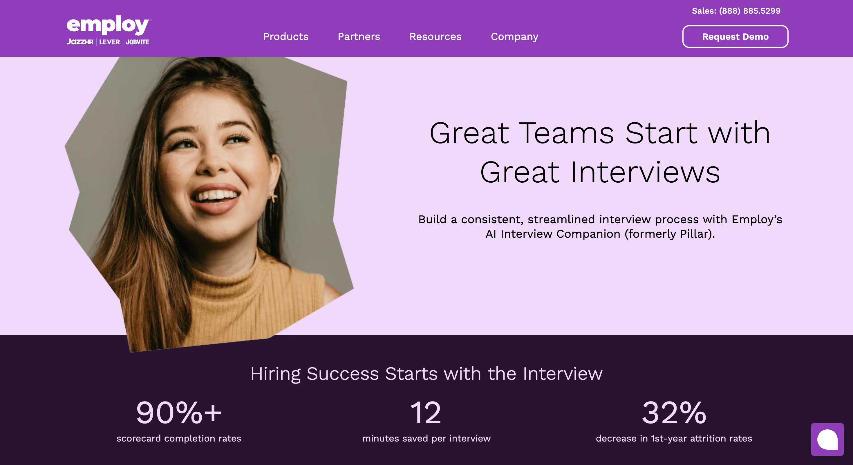 2025年にEmploy社に買収され、「AI Interview Companion by Employ」として展開されています。構造化面接のリアルタイムガイド、AIによるインタビューハイライトクリップの自動生成、面接官トレーニング機能を備え、面接ワークフロー全体をカバーするプラットフォームです。